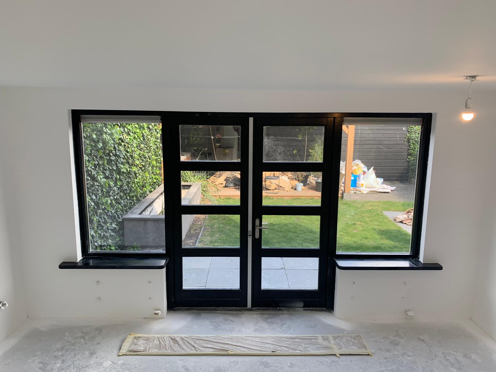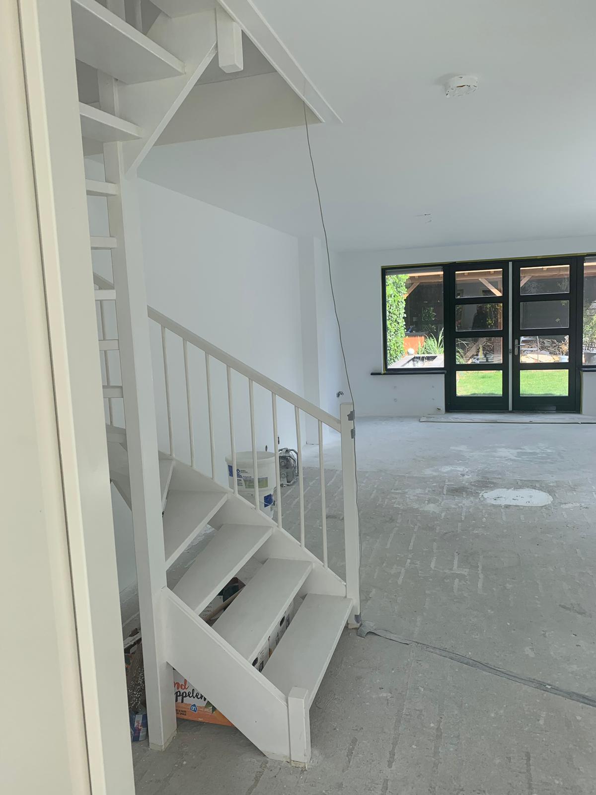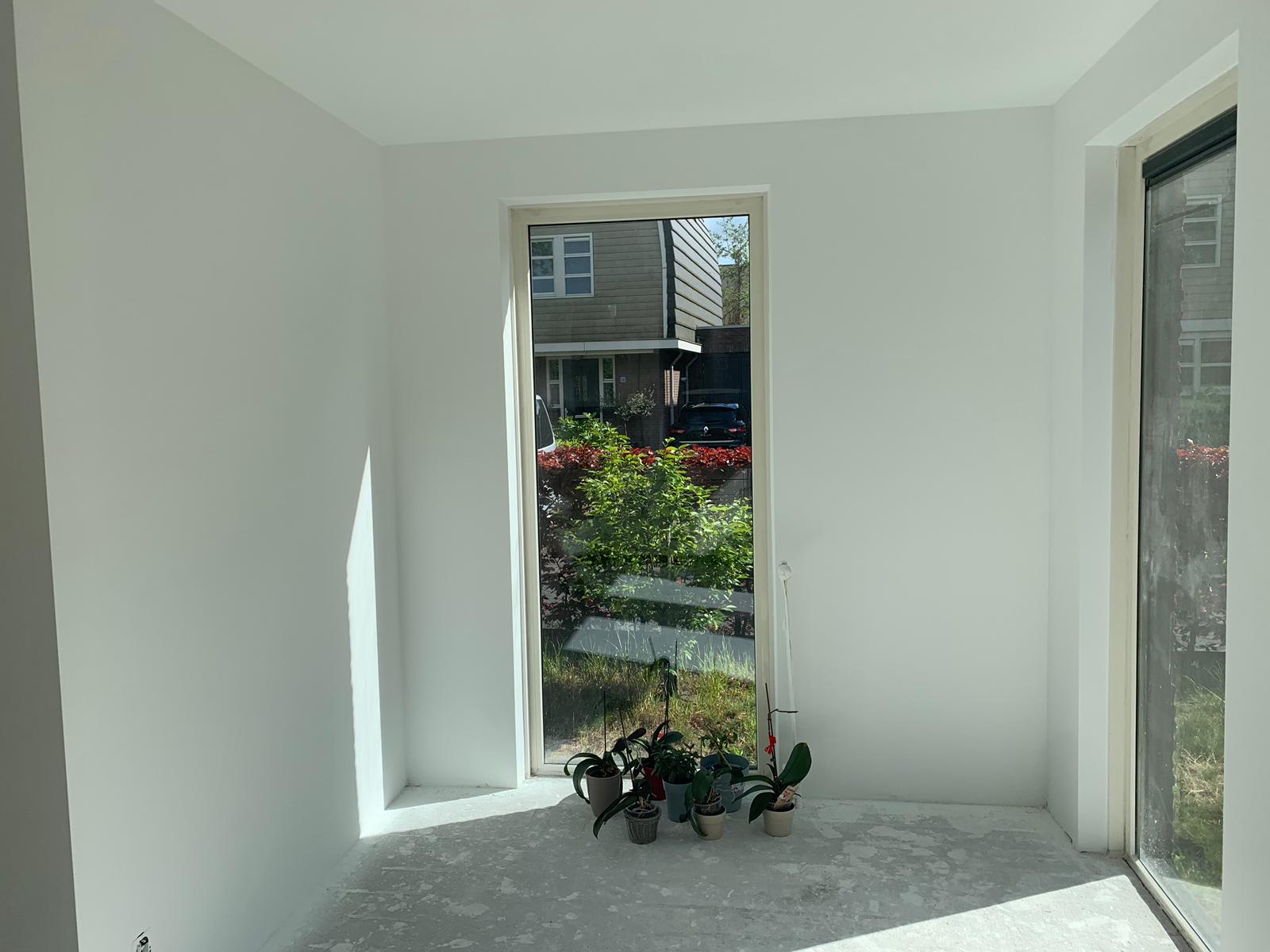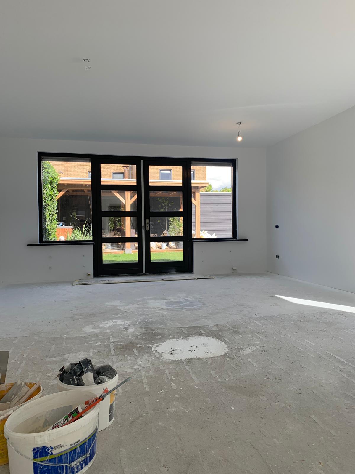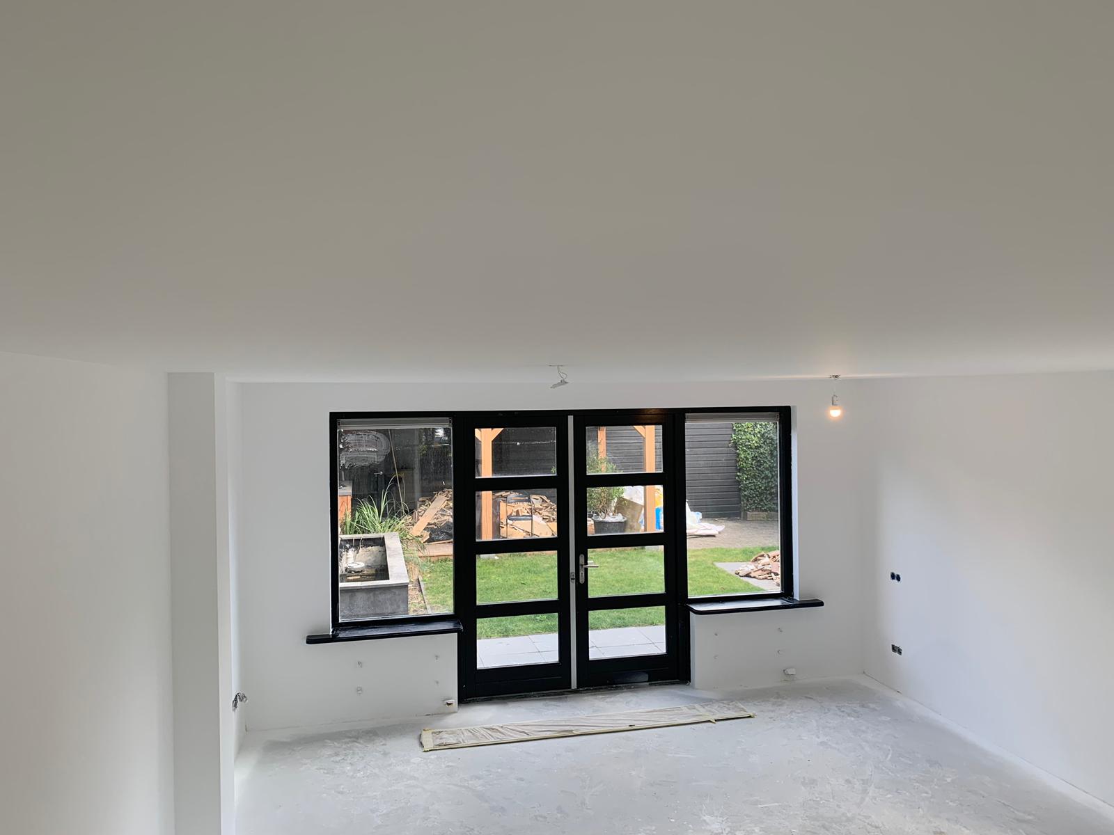 Deze woonkamer in Amersfoort Vathorst is mooi gespoten in de sigma latex wit nadat we de woonkamer gestukadoord hebben.